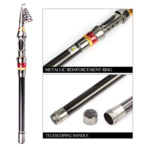 Goture Kohlefaser Teleskoprute Spinnrute Tele-Pole zurückziehbare Angelrute Spinning Angelrute,Salzwasser Boot Sea Rod