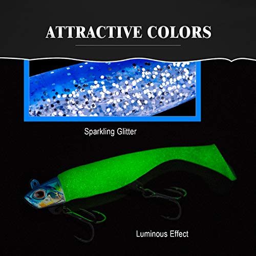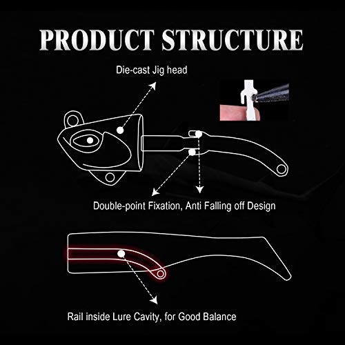 Produktmerkmale: Abzweigung Korpus mit internen Bleiköpfen und weichen Schwänzen anstatt längeren Wurf und schwarzer Nickel-Haken anstatt ein höheres Hakenverhältnis