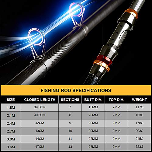 Teleskop-Angelrute: Die Angelrute jeder hochdichter Kohlefaser ist leicht und langlebig. Es ist teleskopisch und die geschlossene Länge macht es enorm bequem zu befestigen.