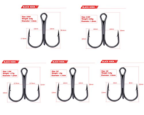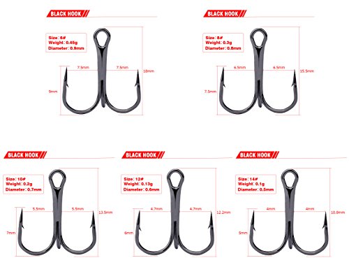 Hervorragende Auswahl und feine Ablauf machen die scharfe Kante des Hakens schwer zu brechen, 3 gebogene Hakenrücken und Widerhaken entworfen, um mehr zu umgehen, dass Fische entweichen.