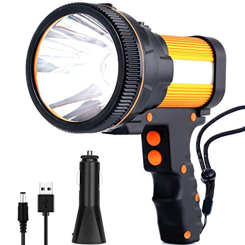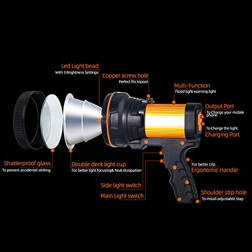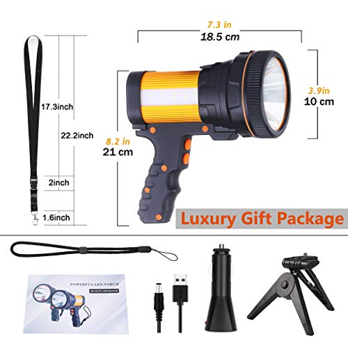 Super Durable and Portable: The spotlight is made of impact-resistant military-aktuell Antiblockiersystem material and aluminum alloy. It can protect the integrity of the spotlight when it is accidentally dropped. It is an ideal lighting tool for hiking, camping, sailing or hunting. It is 7.1 x 3.9 x 7.3 inches in size and weighs only 1.54 pounds. It can be put in a bag and is very convenient to carry.