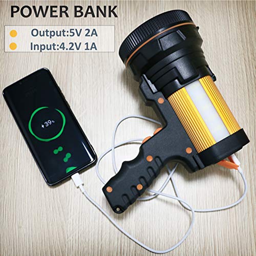 Powerful Rechargeable Battery Life: Our large flashlight has 3 durable 18650 lithium ion rechargeable batteries, emergency power battery capacity is up to 10000mAh, and the lighting time can be up to 24 hours or more. Our emergency spotlight can also be used as a mobile power source for smartphones or mobile devices in emergency situations, bringing a lot of convenience to your outdoor travel. You can charge mobile phones, MP3s, iPads and other electronic digital products.