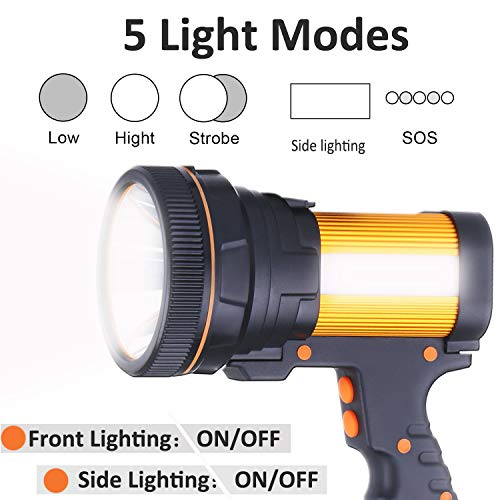 High-Power Bulb: This spotlight is made of a durable 4.2-volt rechargeable 4.2-volt 18650 lithium-ion battery and has a large storage power of 6600mAh. The spotlight works up to 24 hours. The hand-held flashlight uses a high-power light bulb, which can achieve a brightness of up to 7800 lumens. The lighting distance range exceeds 2600 ft / 800 m, and the lighting time can last about 13 hours.