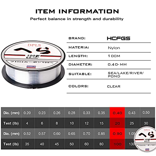 HCFGS Angelschnur, 100m, Starke Spannung, Nylon, Monofilament, Angelschnur, 0.5 mm