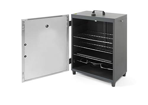 Bestens geeigenet zum Räuchern einer Mannigfaltigkeit von Lebensmitteln als Fisch, Rindfleisch, Popo oder Gemüse. Edelstahlausführung anhand einer exotisch schließenden außerdem einer doppelt isolierten Tür. Thermosstatische Temperaturregelung, dasjenige Thermometer ist in der Tür integriert. Ausgestattet anhand einem Heißluftventilator an der Rückwand. Umfangreiche Rüstzeug im Lieferumfang einbeziehen: 3 Gitter (400x279mm), 3 Fleischhaken, 1x schwarzes Walzblech, 1 Schüssel anhand Edelstahlhalter.