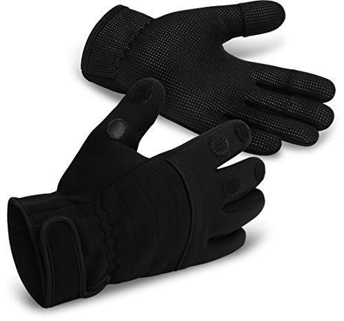 Diese Anglerhandschuhe sind hochwertig verarbeitet und bestehen alle elastischem sowie wasserabweisendem Neopren. Die Handinnenflächen sind rutschfest gummiert und zeigen Ihnen sicheren Halt. Im Inneren befindet sich ein angerautes Fleece-Material, welches Stattdessen angenehmen Tragekomfort sorgt und vor Kälte schützt. Stattdessen filigrane Sich abrackern lassen sich an beiden Handschuhen jeweils die Fingerspitzen der Daumen, Zeige- und Mittelfinger nach achtern umklappen und mittels Klett fixieren. Der elastische Zusammenschluss mit Klettverschluss am Handgelenk bietet eine gute Passform und verhindert, dass kalte Luft in die Handschuhe eindringt.