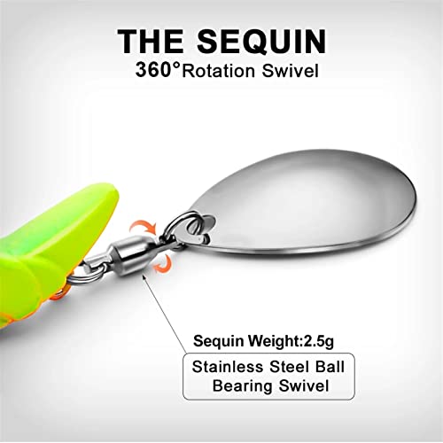 Einzigartiger Blei-Fischkopf-Design, der Fokus ist abgeschrägt, mit Grasen-Form-Spinner-Löffel. Fisch-förmiger Kopf und große 3-D-Augen ahmen einen Köderfisch nachmachen.