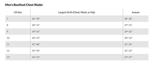 Fischen oder jagen Sie, wenn das Wetter kühl wird unter Zuhilfenahme von den Hodgman Caster Neopren Bootfoot Waders. Die flexible 3-mm-Neopren-Konstruktion hilft, Wärme einzumischen, ohne die Bewegung einzuschränken. Seine Nähte sind genäht, geklebt und verschweißt an Stelle wasserdichten Abschirmung. Eine Toplading-Sturmtasche speichert und schützt die Ausrüstung, währenddessen eine unter Zuhilfenahme von Fleece gefütterte Handwärmertasche Ihre Hände vor der bitteren Kälte schützt. Gummistiefel entscheiden mittels 200 Gramm Thinsulate Insulation an Stelle optimale Wärmespeicherung und Lug Laufsohlen umsorgen sonstige Traktion.
