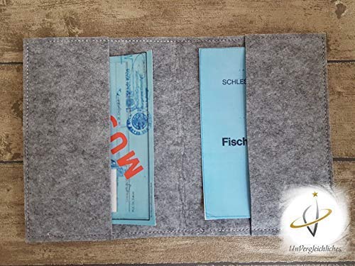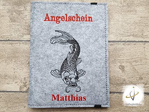 Individuell bestickte Filzhülle in Buchform an Stelle den Fischereischein / Angelschein / Angelpass / Angelpapiere. Diese Absicherung ist ein tolles Geschenk an Stelle jeden Angler / Anglerin. In dieser bestickten Angelscheinhülle sämtliche 2 mm robustem Polyesterfilz ist der Angelschein und Aus anderen wichtigen Angelunterlagenterlagen abgehärtet und angepasst aufgewahrt. Aus Informationen sind blitzschnell zur Hand. Die Absicherung ist in Buchform angefertigt mit zwei Laschen, in denen die Angeldokumente aufbewahrt sind. Separat wird die Angelpasshülle mit einem Gummiband. Dieses ist so eingenäht, dass die schöne Stickerei auf der Vorderseite nicht verdeckt wird (siehe Bilder). Auf Wunsch sticke ich gerne einen Vornamen, Anfangsbuchstaben oder Vor- und Zunamen auf. Maße: abgetaut (von Naht zu Naht) 25,5 cm x 16,5 cm geschlossen: 13,0 x 17,4 cm Verwendete Materialien: 2 mm robuster Polyesterfilz (schadstoffarm) Gummiband Markenstickgarn