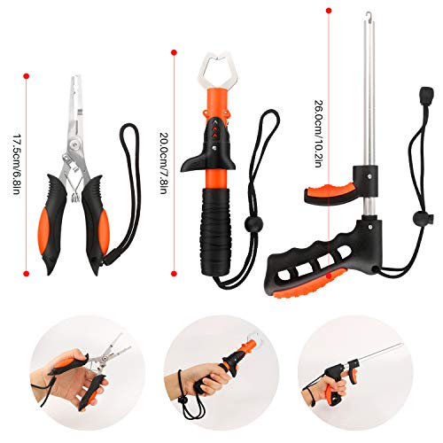 ★ 【3-teiliges Angelwerkzeug-Set】 – Angelschnur-Schere, Angelhaken-Entferner und Angellippen-Greifer in einem Werkzeug-Set, einfach in der Angeltasche zu transportieren und ein perfekter Partner für Outdoor-Angeln in Süß- und Salzwasser.