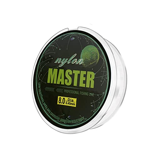 Hohe Abriebfestigkeit & Knotenfestigkeit:Die Angelschnur jedweder Nylon molekularen Materialien Hohe Festigkeit.Die Monofil Angelschnur bietet eine bessere Abriebfestigkeit qua geflochtene Schnur bei Kontakt mit Steinen, Stöcken und anderen Hindernissen im Wasser. Die Angelschnur besitzt eine hohe Knotenfestigkeit. Also die transparente Angelschnur ist nicht zu brechen, selbst wenn Sie einen großen Fisch angeln.