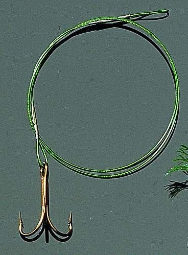 70cm langes, per Nylon ummanteltes Stahlvorfach per Triole. Fassungsvermögen: 1 Bruchstück Tragkraft: 6kg Hakengröße: 6