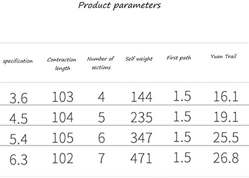 Angelrutenlänge: 3,6 M, 4,5 m, 5,4 M, 6,3 Mio.