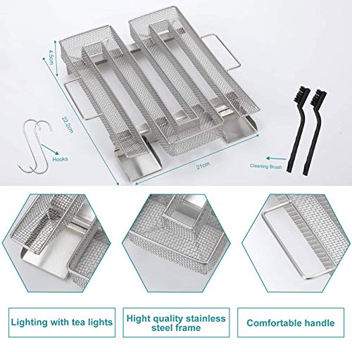 🍖【Einfache Bedienung】🍄Einfach mit Weihrauchpulver auffüllen und mit einer Teelampe anzünden. Stellen Sie hart im Nehmen, dass ausreichend Luft vorhanden ist, um die besten Ergebnisse zu erzielen. Einfach zu säubern. Nach dem Brennen einfach die Asche abhacken und die letzten Rückstände mit einer Drahtbürste trennen. Lieferumfang: 1x Kaltrauchgenerator(22,5×17,5×4,5cm), 2 x BBQ Reinigungsbürste, 2 x Haken. HINWEIS: Räuchermehl ist NICHT im Lieferumfang enthalten!