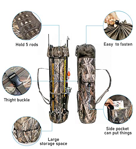 【Große Kapazität, einfach zu verstauen】Ausdehnung: 123 cm (48,4 “) * 34 cm (13,4 “) (L * D). 5 Ruten- und Rollenbeutel außen, 1 Seitentasche und 1 großes Innenfach. Genug, um Angelrute, Angelrolle, Angelköder und andere Angelgeräte sauber zu halten.