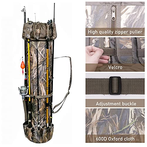 🐟2.Große Kapazität und verstellbare Träger, bequem und vertretbar.🐠3.Bewahren Sie bis zu 5 Ruten und Rollen in den Taschen an der Außenseite der Tasche auf und abstützen Sie sie.