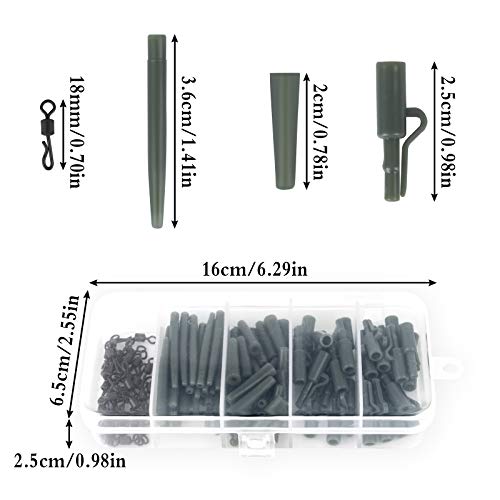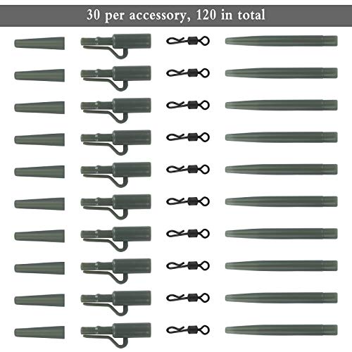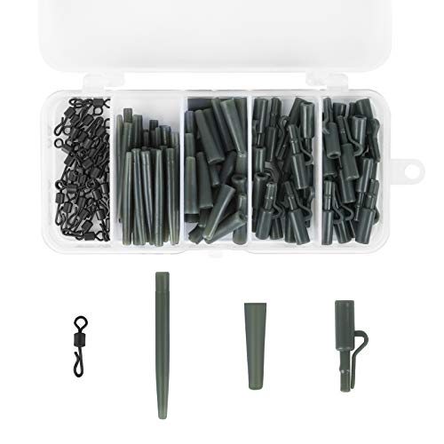 Wertpaket: Das Karpfenzubehör Kit enthält vier verschiedene Arten von Karpfen Fischereigerät, insgesamt 120 Abschnitt. 30 Abschnitt Kunststoff Blei Clips, 30 Abschnitt Anti Tangle Ärmel, 30 Abschnitt Schwanzgummi und 30 Abschnitt Wechselwirbel. Kann für den täglichen Angelbedarf verwendet werden und jederzeit ausgetauscht werden oder defektes Zubehör neuerlich verwendet werden.