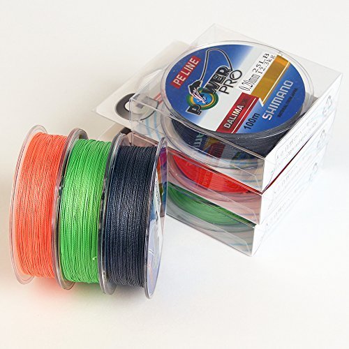 Geflochtene Angelschnur Dyneema in den Farben grün,schwarz,orange auf 100m Spulen, in den Anstoßen 0,20 mm,0,25mm,0,30mm.Vierstrang von Shimano.Ideal zum Unterfüttern,z.B.100 m Monoschnur des Weiteren 100 m geflochtene Schnur aufspulen des Weiteren via einen Uniknoten verkleben.Neben FLuchten der Fische wird der Uniknoten niemals erreicht, da meistens hinwieder 50m von der geflochtenen Schnur vom Fisch abgewickelt werden.Vulgo adäquat zum leichten Schleppangeln.