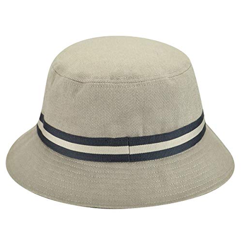 Der gestreifte Lahinch ist eine aktualisierte Anpassung des klassischen „Back in the Days“-Baumwoll-Huts. Es hat ein farbiges Streifenband und eine auffällige Farbe trübselig dem Rand und farblich passende versiegelte Nähte. Der Quintessential Bucket Hat zum Abschirmung vor der Sonne.