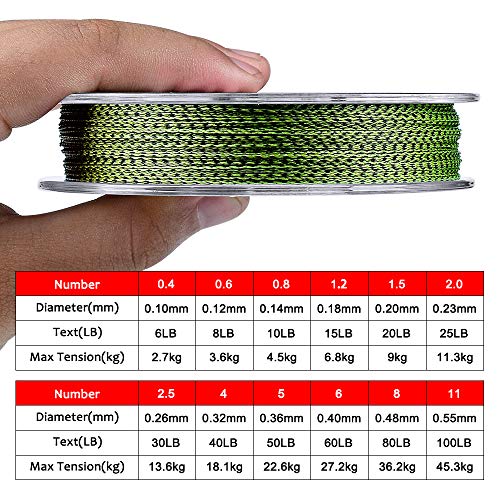 4 Stränge geflochtene Schnur – Die geflochtene Angelschnur ist qua 4 Strängen ausgestattet, hohe Empfindlichkeit und minimale Dehnung, hochwertige, langlebige geflochtene Angelschnur.