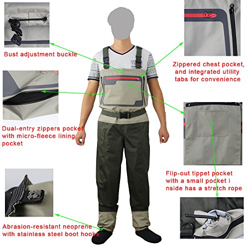 Verstellbare, elastische Hosenträger mit gegenüberliegenden Schnallen sorgen zudem für eine bequeme, sichere und richtig richtige Passform. Abriebfestes Neopren mit Edelstahl-Bootshaken und verstärktem Befestigungsdesign, während 4-Millimeter-Neopren-Stockfüße ein besseres, mehr bequeme Passform. Um das Wesentliche leicht zugänglich zu halten, hat Kylebooer eine ausklappbare Tippetasche mit einer kleinen Innentasche mit Stretchseil.