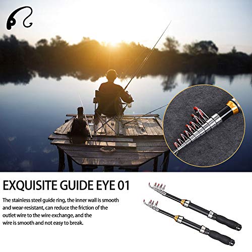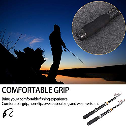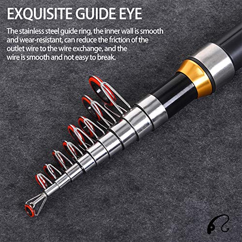 Der Rollenhalter aus Edelstahl mit Kapuze ist korrosionsbeständig gegen Meerwasser; EVA-Griff für Komfort. Attraktives Design, geschickte Vollziehung und ausgeklügelte Technologie umsorgen ein überlegenes Tastgefühl der Teleskop-Angelrute. Angewandtes Karbonmaterial mit leichter und zuverlässiger Qualität