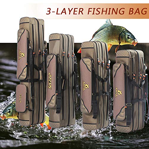 🐟【Geräumige Kapazität】–Mehrere Taschen bieten eine große Kapazität für Ihr Angelgerät.3 geräumige Hauptfächer mit doppeltem Reißverschluss ermöglichen den Einsicht auf Ihre Angelausrüstung.Die lange Seitenaußentasche dieser Angelrutentasche ist ideal um Angelausrüstung wie Erdspieße, Rutenhalter, Kescher und Co. zu verstauen.