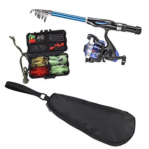 Lixada Angelrute mit Angelrolle und Teleskop-Angelrute 1,3 m / 1,5 m mit Haken, weiche Köder, Aufbewahrungstasche