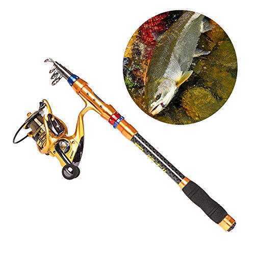 🎣PERFEKTE ELASTIZITÄT: Angelgerät sämtliche Kohlefaser mit Hilfe von Aluminiumspulensitz, wodurch die Angelgerät leicht u. a. langlebig wird. Der EVA-Schaumstoffgriff kann fest befestigt werden, um Komfort zu andienen. Die Teleskop-Angelgerät ist leicht zu versteifen.