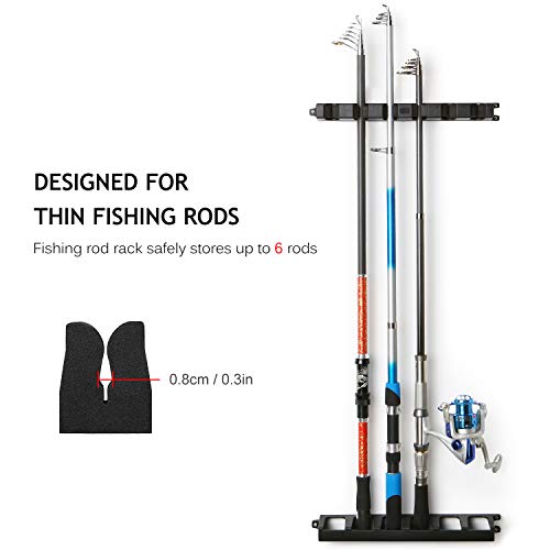 Lixada Rutenhalter für 6 Angelruten, dünne Wandmontage, einfache Handhabung, Rutenhalter für Angelruten