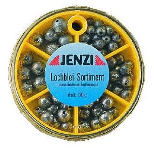 Lochbleisortiment Kugelbleisortiment gelocht in verschiedener Sortierung. Volumen: 120 Gramm Wird in praktischer Spenderdose geliefert