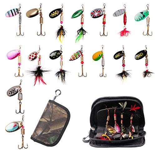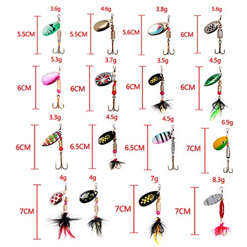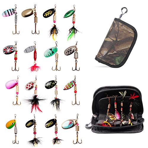 LPATTERN 16-teiliges hochwertiges Spinnerköder-Set mit verschiedenen hellen Farben und Größen.
