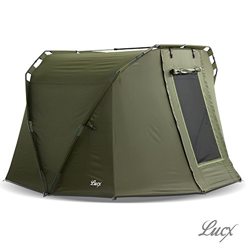 Lucx® Caracal Angelzelt 1 bis 2 Mann Bivvy 2 Personen Karpfenzelt Carp Dome Anglerzelt 295x290x165cm 10.000mm Wassersäule Campingzelt