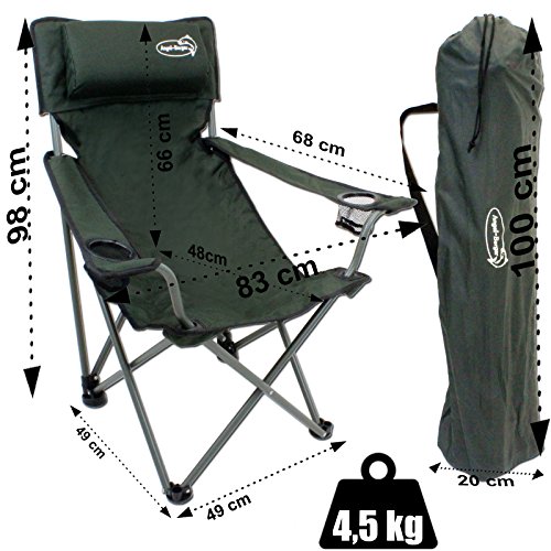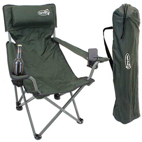 Luxus Faltstuhl Klappstuhl mit Getränkehaltern Polster und Armlehnen Grün