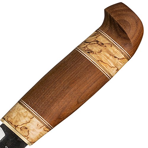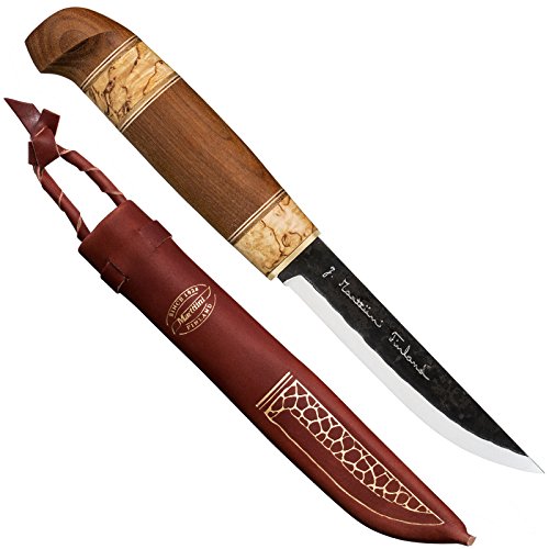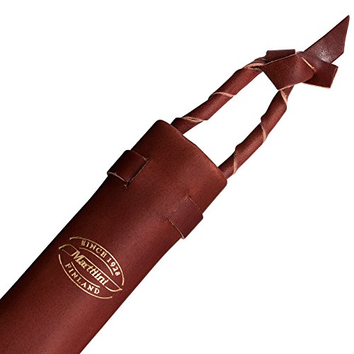 Marttiini Gürtelmesser Kierinki, Carbonstahl, in keinster Weise-rostfrei, Maserbirke, wärmebehandelte Birke, hellbraune Lederscheide, 189611