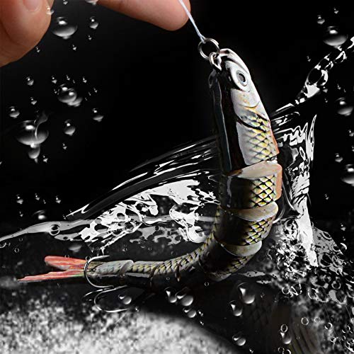 Eigenschaften: Die Swimbait arbeiten sich sehr echt und wendig in Wasser. Durch die Körperteilung in 6/8 Segmente wirkt das Bewegunsgmuster sehr echt. Der Köder schlängelt sich durchs Wasser und immitiert einen verletzten Beutefisch und locken dadurch große Fische wie Hecht, Barsch oder Zander zu fangen.