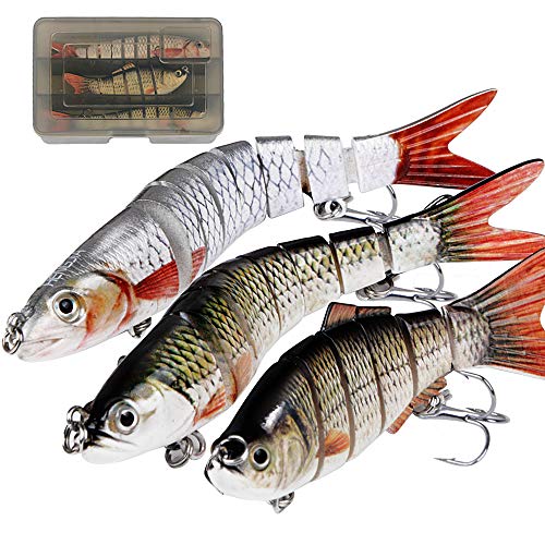 MEJOSER Wobbler Set 3 Stück Jerkbait Kunstköder Set Swimbait Hardbait Angelköder für Hecht Barsch Zander Angeln Köder mit 2 Drillingshaken und Fischköder Box