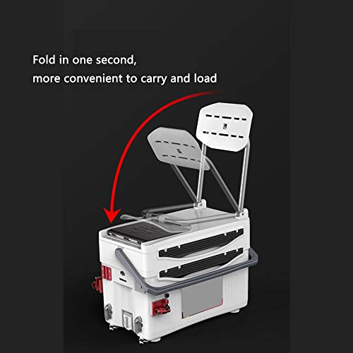 [Features] 3600 super große Kapazität, kann mit einer Diversität von Zubehör geladen werden, um das Angeln bequemer zu herstellen. Mit der mehrschichtigen, erhöhten Angelbox können Sie bequem angeln. Unabhängige zerlegbare Werkzeugschicht, klarere Aufteilung des Zubehörs. Das Zusammenklappen in einer Sekunde erleichtert das Stützen und Laden. Die Zubehörabdeckung kann geöffnet und das Zubehör auf die Gattin genommen werden.