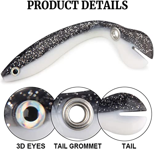 【Lebensechte Schwimmaktion】 Verwalten Sie die Angelschnur durch das Loch und ziehen Sie. Das Paddle-Tail-Design mit superweichem Material sorgt für extrem verlockende Schwimm-Action. Fischköder absacken langsam und bewegen sich anpassungsfähig im Wasser. Das ist wirklich eine große Versuchung für hungrige Fische anzugreifen.