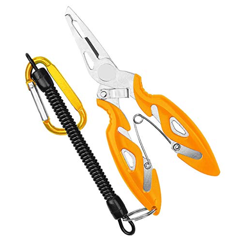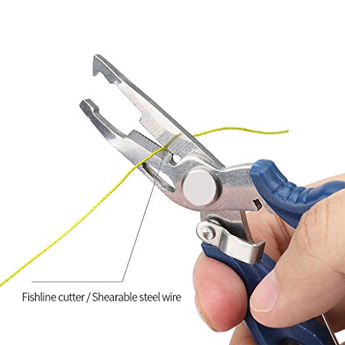 【Geeignet für】Das rechteckige Haken-Design auf dem Kopf unserer Angelzange erleichtert das Öffnen der Schlaufe und das Trennen des Hakens. Es eignet sich auch sehr gut zum Mähen von Stahldraht, Trennen von Haken und Festziehen von Knoten.