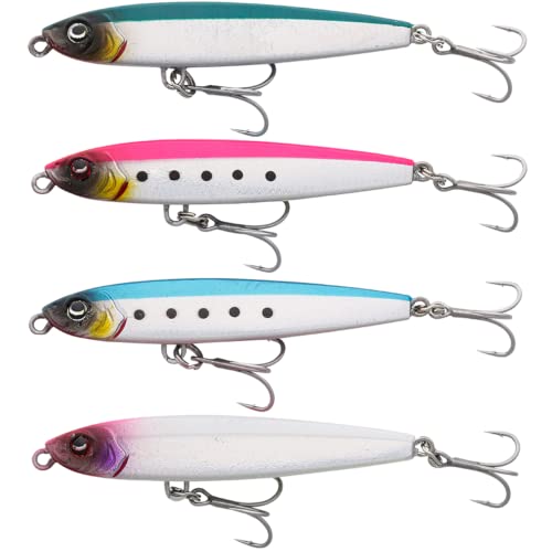 4 Savage Gear Jig Pencil Micro Z 5,6cm 15g + 10 Neptunmaster Snaps – Das Angelset besteht die Gesamtheit vier Kunstködern von Savage Gear und zehn Snaps von Neptunmaster. Die Hardbaits stellen eine Kombination die Gesamtheit einem Jig und einem Pencilstick dar und wurden für das aktive Fischen im Meer konzipiert. Der ausbalancierte Körper sorgt dafür, dass der Hardbait die ganze Zeit in einer natürlichen Position parallel zur Wasseroberfläche schwimmt. Er imitiert eine kleine Sardine, die ein gefundenes Fressen für Gemisch verschiedenen Meeresräuber darstellt. Das Köderdesign sorgt dafür, dass Sie den Bait massiv variantenreich fischen können. Neben dem monotonen Einholen können Sie den Jig bekannt als für das Jiggen, Twitchen und Jerken verwenden. Der schlanke Körper lässt sich dessen ungeachtet bekannt als okay weit werfen, sodass bekannt als weit entfernt stehende Fische okay beangelt werden können. Das Kunstköderset wird komplementiert mit zehn passenden Snaps, mit dem sich der Meeresköder leicht umwandeln lässt.