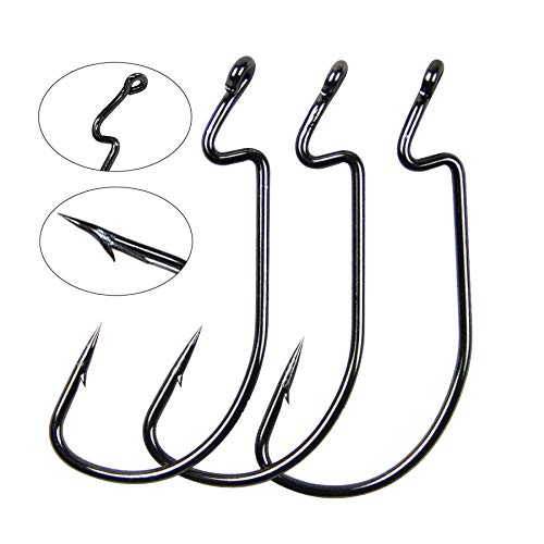 Offsethaken Wurm Angelhaken Set mit Kunststoff-Box,Offset Angeln Haken für Gummiköder Gummifische Jigs Creature Köder…