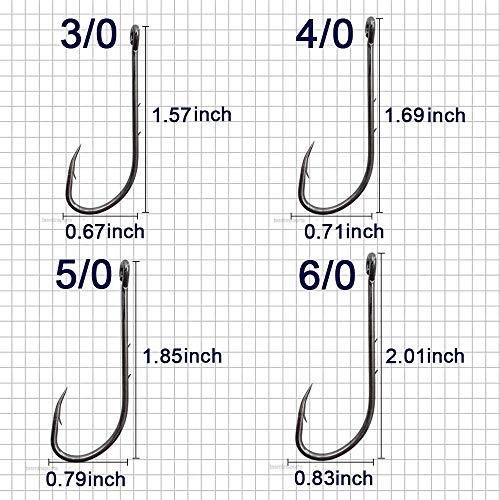 Angelhaken Salzwasser, Langschaft Widerhaken mit Hohem Kohlenstoffstahl Angelhaken und Schnabelhaken Angelzubehör (80…