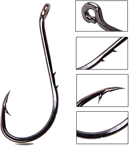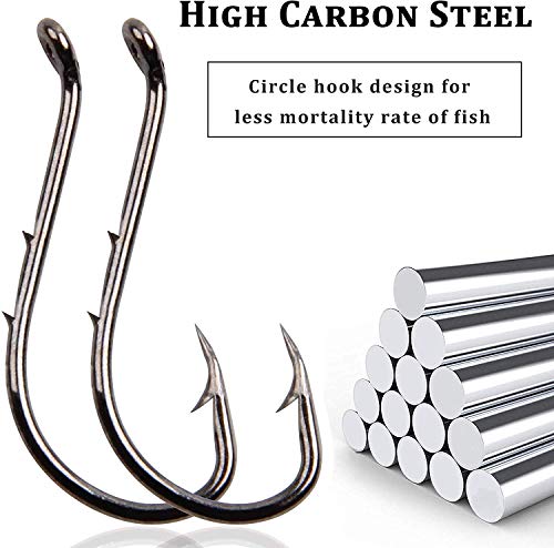 OROOTL Köderhalter-Haken, Meeresangeln, 100 Stück Jighaken, Hartstahl, Kreishaken, extra scharfe, schwarze Widerhaken…
