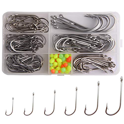 O’shaughnessy Angelhaken, 130 Teil/Box, Edelstahl, geschmiedet, langer Schaft, Abseitsstellung Krass, zugunsten Salzwasser und Süßwasser Fischen