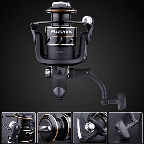 【Leistungsstarke HT3000 Spinnrolle】Leer 8 hochwertigen Kugellagern und 1 Einweg-Rücklaufsperre mit Sofortstopp. Diese außergewöhnlichen Lager verkleinern Geräusche und bieten Ihnen einen seidenweichen und ausgewogenen Betrieb sowie den ganzen Tag über Angelkomfort. Angelrollen haben alias eine CNC-Aluminiumspule mit hoher Kapazität und einen umkehrbaren Aluminiumgriff für Links- oder Rechtshänder. Leinenkapazität: LBS / YDS: 12/240 14/195 0,16 / 160. Modell: HT 3000; Übersetzungsverhältnis: 5,2: 1.