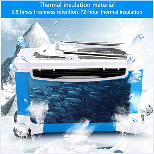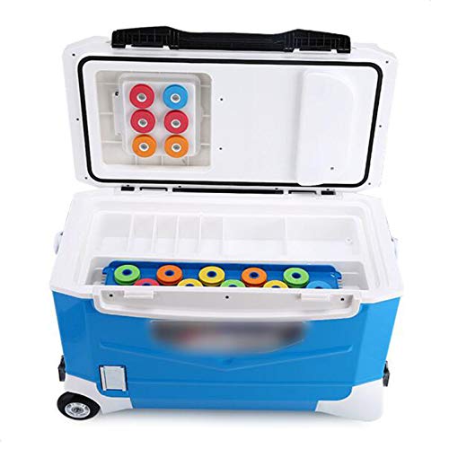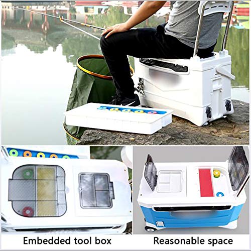 Multifunktionale Angelbox mit Sitz blau, Verdickung Lebendköder Kühler mit Rädern und Spurstange für Outdoor Angeln Warm und Kalt Vereinsamung