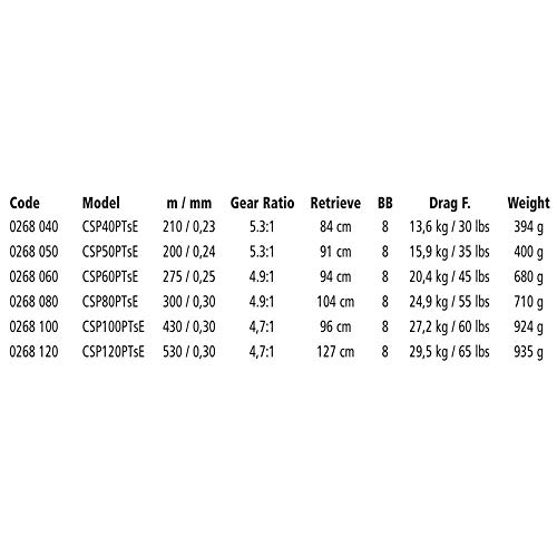 Quantum Cabo PT CSP100PTsE Stationärrolle 430m 0,30mm, Meeresrolle via Frontbremse, Angelrolle fürs Salzwasser