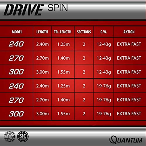 EINE RUTENSERIE FÜR ALLES: Die Drive Rutenserie bedient jeden Spinnangler und seine Vorhaben; Mit einem breitem Spektrum an Rutenlängen und Stärken finden Sie garantiert die Spinnrute, die zu Ihrem Zielfisch oder bevorzugten Angelart passt und lässt Sie Ihren Angelköder punktgenau servieren; ob Sie bevorzugt mit Blinker, Gummifisch oder Spinner angeln, diese Rutenserie ist die richtige Wahl