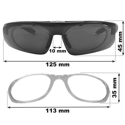 Rapid Eyewear’s Sportbrillen mit Korrekturgläser besitzt Rx Einsätze, so dass die getönten Wechselgläser vorne auf dem Rahmen anliegen um eine optimale Qualität von Sportsonnenbrille für die Personen zu bieten, die Korrekturgläser benötigen. Eine robuste und hinwieder leichtgewichtige TR90 Polycarbonat Druckerzeugnis mit Rx Einsätzen.